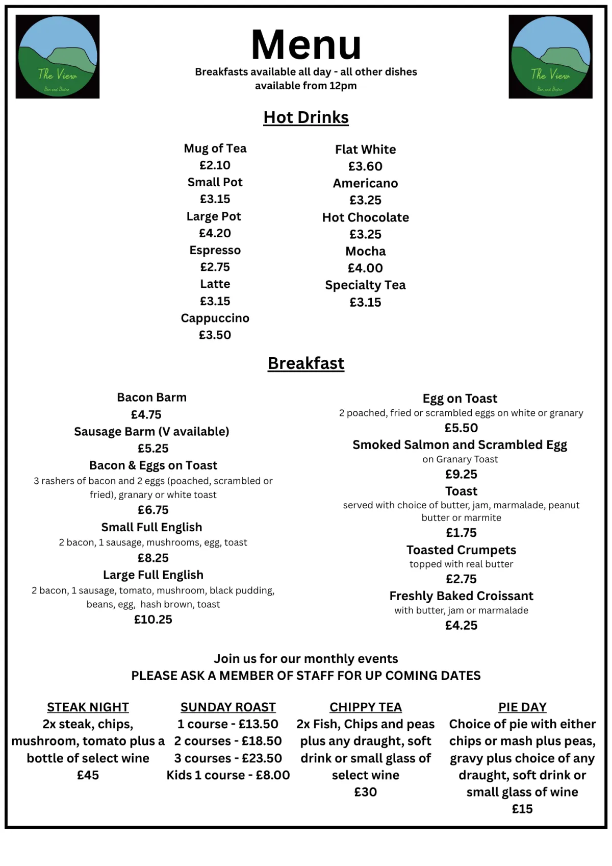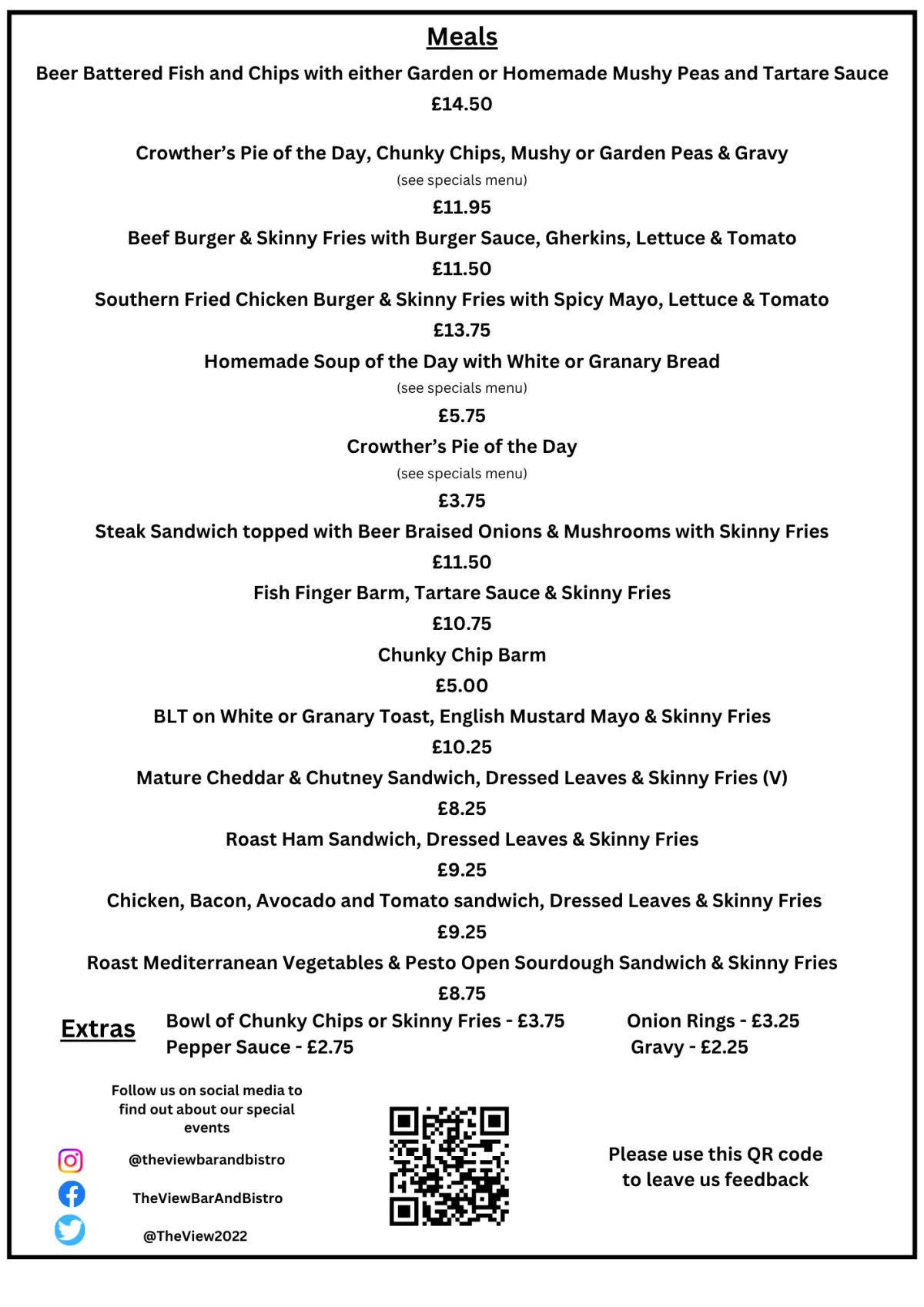 We pride our self on producing hearty, home cooked food using the freshest of local produce. We hope that when you dine with us you leave feeling satisfied without breaking the bank.